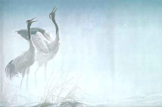 "Cries of Courtship - Red Crowned Cranes" By Robert Bateman